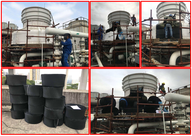 鴻翔花園位于深圳老城區之一的羅湖蔡屋圍區松園路。由于冷卻塔使用壽命長,冷卻塔填料老化,需要更換冷卻塔填料。接下來,根據鴻詳花園圓形冷卻塔填料的更換,介紹了拆卸和更換圓形冷卻塔填料的正確過程。 在清除